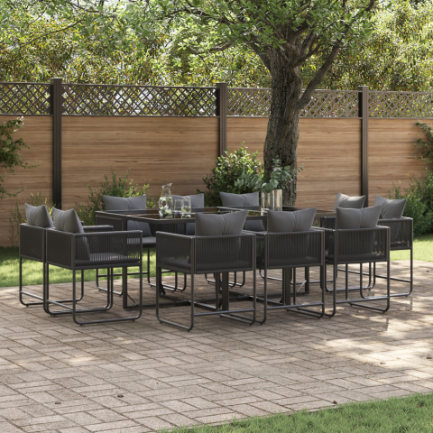 1 kép 13 darabos kertivacsora szett párnákkal acélból és poli rattanból