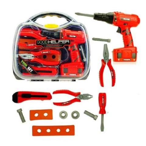 A játék szerszámos táskában a barkácsoláshoz szükséges alap szerszámok találhatóak. Használatuk fejleszti a kézügyességet és a logikus gondolkodást. A csavarhúzóba többféle fej illeszthető, a fúrógép pedig gombnyomásra forgatja a tokmányát, mint ahogy a