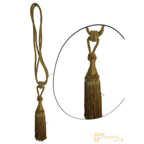 ◤Kategória: Függöny kikötő ◤Mérete: 60 cm hosszú. Bojt mérete:18 cm ◤Zsinór vastagsága: 8 mm ◤Szín: Arany ◤Anyagösszetétel: 20% kevert szál, 50% acetát, 30% polipropilén Kategória: Függöny kikötő Szín: Arany Anyagösszetétel: 20% kevert szál, 50% acetát