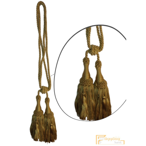 ◤Kategória: Függöny kikötő ◤Mérete: 60 cm hosszú. Bojt mérete:20 cm ◤Zsinór vastagsága: 8 mm ◤Szín: Arany ◤Anyagösszetétel: 20% kevert szál, 50% acetát, 30% polipropilén Kategória: Függöny kikötő Szín: Arany Anyagösszetétel: 20% kevert szál, 50% acetát