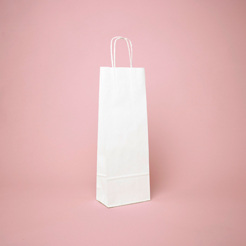 Hagyományos sodrottfüles papírtáska, újrahasznosítható alapanyagból. Leggyakrabban a vendéglátásban vagy a kereskedelemben használják. A papírtáska teherbíró képessége kb. 3-4 kg. Méret: 14x8x39 cm (szélesség x talp x magasság), álló formátum, 1 pala..