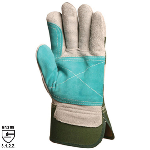 10-es méretű munkavédelmi kesztyű A termék megfelel a EN420, EN388: 3122 szabványoknak. Szürke marhahasíték tenyér Zöld marhahasíték megerősítés a mutató- és hüvelykujjon valamint a tenyéren Erős vászon kézhát és mandzsetta Artéria, köröm és ökölcsontv