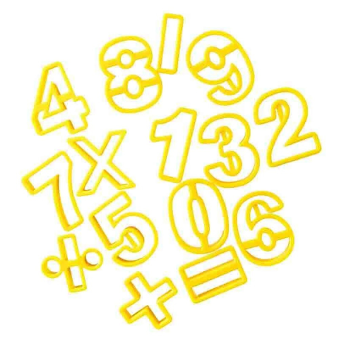 15 darabos műanyag szám kiszúró szett, melyekkel igazán egyedi süteményeket tudsz készíteni a gyerekeknek. Játszva tanulhatjuk meg együtt a számokat és a különböző matematikai műveleteket és közben még valami finom is kerülhet az asztalra. Tulajdonságok: