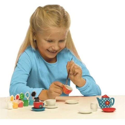 1 kép 15 db-os 2in1 kifesthető porcelán teás készlet gyerekeknek - kreatív játék és babakonyha felszerelés