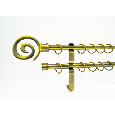 3 kép 16 mm Ø Houston karnis szett, 2 soros, óarany, lapostartóval (160 cm)