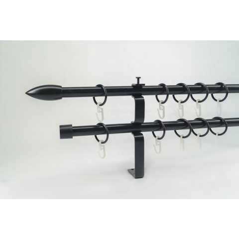 3 kép 16 mm Ø Memphis karnis szett, 2 soros, fekete, lapostartóval (200 cm)