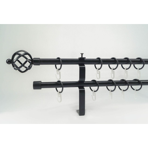 3 kép 16 mm Ø Szeged karnis szett, 2 soros, fekete, lapostartóval (300 cm)