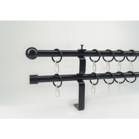 3 kép 16 mm Ø Veszprém karnis szett, 2 soros, fekete, lapostartóval (300 cm)