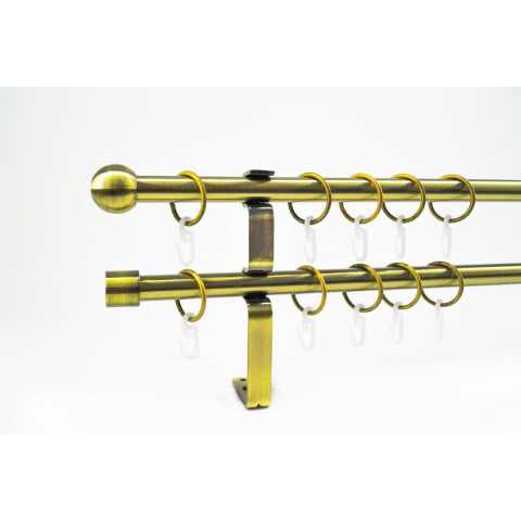 3 kép 16 mm Ø Veszprém karnis szett, 2 soros, óarany, lapostartóval (160 cm)
