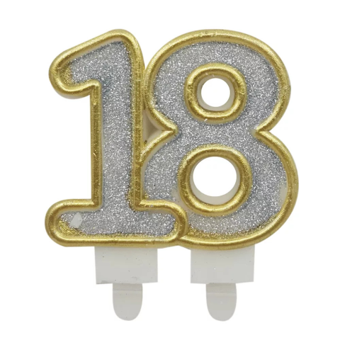 Ezüst színű, 18-as számot mintázó számgyertya, mellyel egyszerűen díszítheted az otthon készített születésnapi tortádat. Tulajdonságok: Anyaga: viasz és műanyag A gyertya méretei: 68 mm × 80 mm (a beszúró résszel együtt)