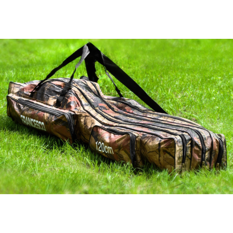 1,2m hosszú 3 fakkos botzsák plusz kettő tároló zsebbel 120cm + 3 fakk + 2 zseb! A 120cm hosszú, három különálló tároló részből álló botzsák kiválóan alkalmas minden olyan horgászbot tárolására és szállítására, mely összecsukott állapotban nem halad