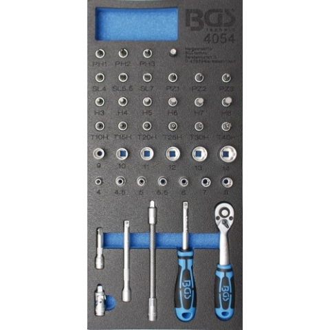 1 kép 1/3 Szerszámtálca szerszámkocsihoz: 41 részes 1/4" dugókulcs készlettel (BGS 4054)