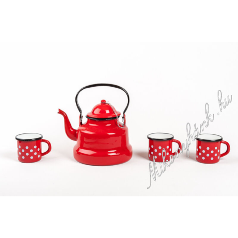 3 x piros pöttyös zománcozott bögre