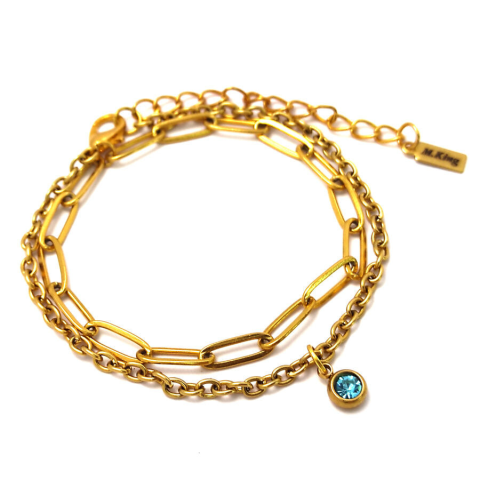 1 kép 1 Kék kristályos charmos rozsdamentes acél dupla karkötő, arany színű