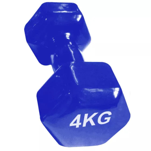 Hatszögletű, műanyag borítású fém, 2×4kg-os egykezes kézisúlyzó készlet, ami ideális aerobic- és más tornagyakorlatok elvégzéséhez. A lágy műanyag borítás kellemes tapintású, esztétikus, és könnyen tisztítható. A borítás színe a súlyzók tömege szerint változik. A súlyzó mérete a súlyzófejen látható.