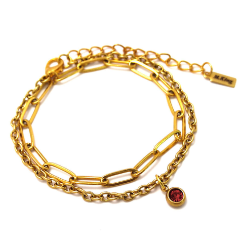 1 kép 1 Piros kristályos charmos rozsdamentes acél dupla karkötő, arany színű
