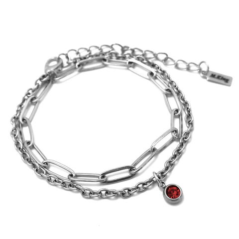 1 kép 1 Piros kristályos charmos rozsdamentes acél dupla karkötő, ezüst színű