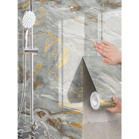 1 kép 1 Tekercs Vízálló Aranyozott Márványmintás Tapéta, 45x500 cm, Szürke 35703384-SZ