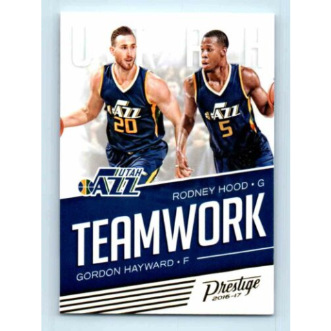 Az eladásra kínált 2016-17 Panini Prestige Teamwork # 11 Gordon Hayward/Rodney Hood kosaras kártya NM-MT állapotban van. A kosaras kártyákat legtöbb esetben UP Platinum/Standard puha védőtokban és/vagy UP Toploader (kemény védőtok)-ben küldjük. Az elad