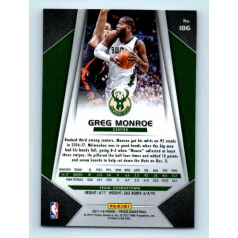 1 kép 2017-18 Prizm Basketball Base # 186 Greg Monroe