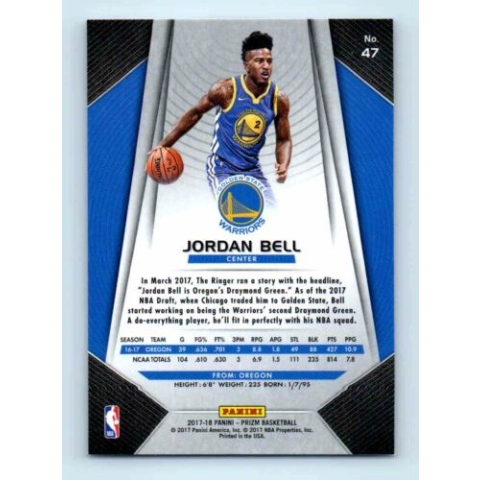 Az eladásra kínált 2017-18 Prizm Basketball Base # 47 Jordan Bell kosaras kártya NM-MT állapotban van. A kosaras kártyákat legtöbb esetben UP Platinum/Standard puha védőtokban és/vagy UP Toploader (kemény védőtok)-ben küldjük. Az eladásra kínált 2017-1