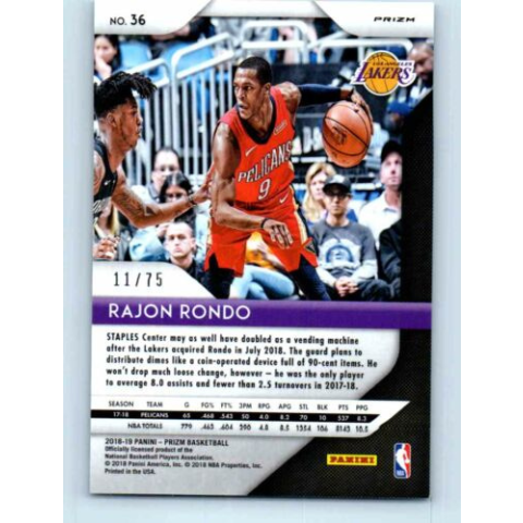 1 kép 2018-19 Panini Prizm Purple # 35 Rajon Rondo 11/75