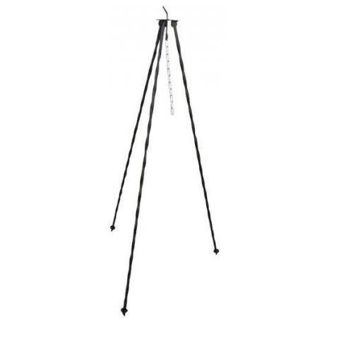 Bográcsállvány 1m - Masszív fekete kovácsoltvas szerkezet 🔥 Ez a masszív, 1 méter magas bográcsállvány tökéletes választás bográcsozáshoz, akár kertben, akár túrázás közben. Kovácsoltvas szerkezete rendkívül stabil és tartós, biztosítva a bogrács bi...