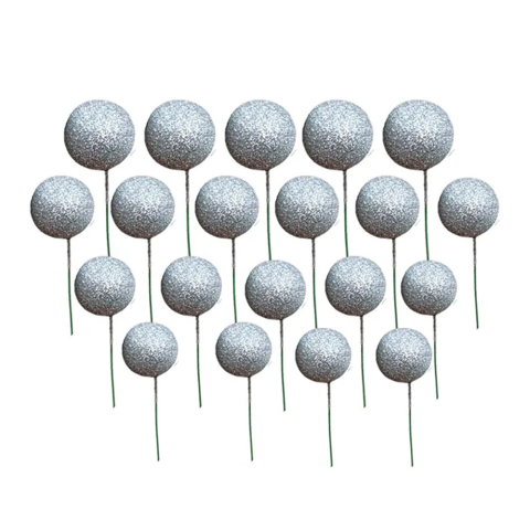 20 darabos, ezüst színű, glitteres műanyag gömb dekoráció, melynek segítségével különleges tortadekorációkat tudsz készíteni. Díszíthetsz vele születésnapi vagy esküvői tortát, de praktikus dekoráció lehet egy babaváróra, vagy eljegyzési partira készített