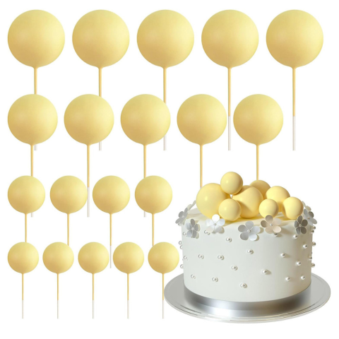 20 darabos, citromsárga színű műanyag gömb dekoráció, melynek segítségével különleges tortadekorációkat tudsz készíteni. Díszíthetsz vele születésnapi vagy esküvői tortát, de praktikus dekoráció lehet egy babaváróra, vagy eljegyzési partira készített süte