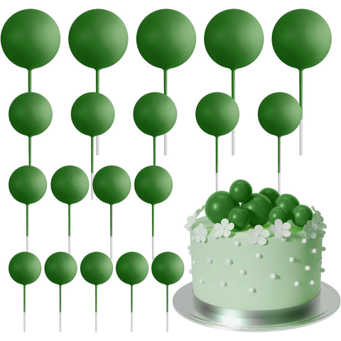 20 darabos, zöld színű műanyag gömb dekoráció, melynek segítségével különleges tortadekorációkat tudsz készíteni. Díszíthetsz vele születésnapi vagy esküvői tortát, de praktikus dekoráció lehet egy dinoszaurusz témájú torta elkészítésénél is. Tulajdonsá