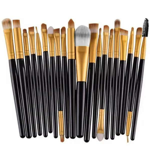 Tedd fel kérdésed a(z) 20 darabos sminkecset készlet - szintetikus szőr, fa hatású nyél, arany foglalat termékről!