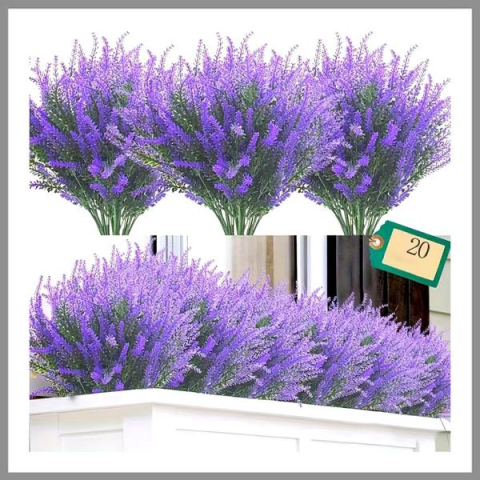 Ez a készlet 20 csomag műanyagból készült, élethű levendula csokrot tartalmaz, amelyek tökéletesek kültéri és beltéri dekorációhoz egyaránt.