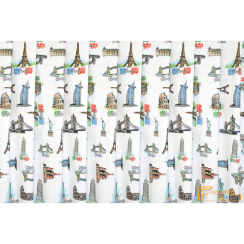 Teljes (20 szín) Caraibi dekorációs függöny-bézs alapon város mintás termékleírás