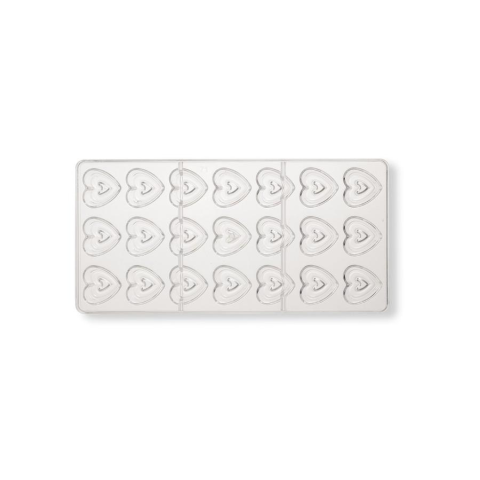 Ebben a 21 adagos szív alakú polikarbonát bonbon formában tökéletes csokikat készíthetsz!