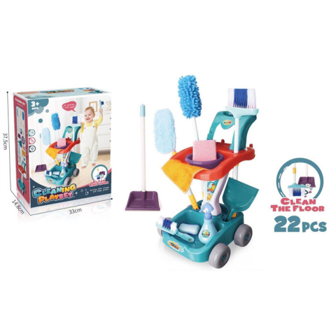 22 részes takarító készlet kocsin, amely elhozza a takarítás szórakozását a gyerekek számára! A készlet tartalmaz minden szükséges eszközt, amellyel a kicsik megismerkedhetnek a takarítás világával, miközben játékosan tanulnak. A