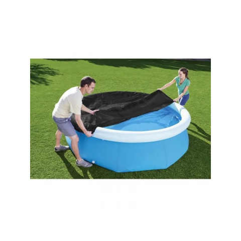 A 244 cm átmérőjű medencetakaró, felfújható peremű, vagy merevvázas medencékhez készült. A védőtakaró hatékonyan védi medencédet a szennyeződésektől, rovaroktól és hulladékoktól. Kiváló minőségű, sötét PVC anyaga nemcsak tartós, hanem segít a víz hőmérsék
