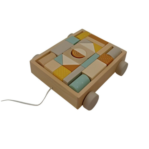 Fedezze fel modern és izgalmas játékainkat, vásárolja meg termékünket kényelmesen webáruházunkból! Húzogatós kiskocsi színes építőkockákkal. A kocsi a kockák tárolására is alkalmas, mely ösztönzi a gyermeket a rend szeretetére. Az építőkockák játékosan se