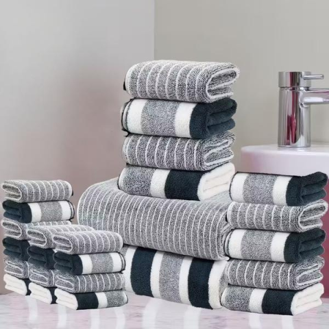 25 részes törölköző szett sötétszürke DV6728756Többféle méret: nagy fürdőtörölközők, kéztörlők, kisebb mosdó‑/arc‑ törölközők — így a szett lefedi a fürdőszobai, kéz‑/arc‑törlési és mindennapi használati igényeket.A darabszám (25 db) és a sokféle törölközőtípus miatt ideális nagyobb háztartásokhoz, családokhoz, de akár edzőterembe, vendéglátásra, fürdőszobába is.Gyors száradás — a mikroszálas törölközők alacsony vastagságu