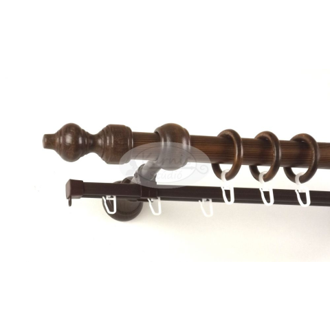 1 kép 28 mm-es fa rúdkarnis szett - U-sínes - dió - 160 cm