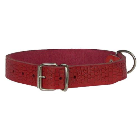 2,5 cm széles pikkelymintás piros bőr nyakörv