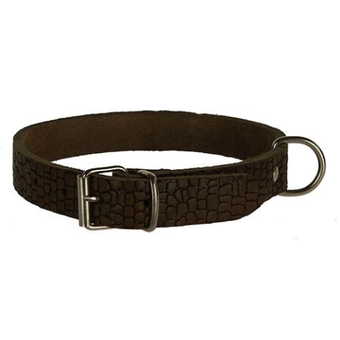2 cm széles pikkelymintás középbarna bőr nyakörv