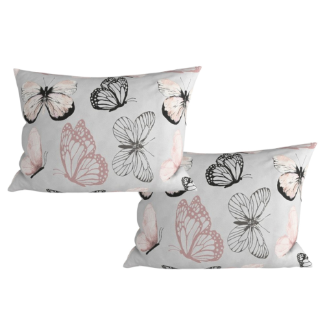 Szett 2 db díszpárnahuzat mikroszálból MY BUTTERFLY világosszürke színben, amely finomságot és könnyedséget hoz otthonába. Az elegáns pillangómotívum fekete, fehér és bézs színben légies és modern hatást kelt.