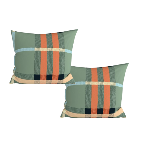 Szett 2 db díszpárnahuzat mikroszálból PLAIDORY zöld kialakításban nagyszerű választás a klasszikus és időtálló minták kedvelőinek. A kockás minta zöld, narancssárga, bézs és fekete színek kombinációjával látványos, és életet visz bármely enteriőrbe.