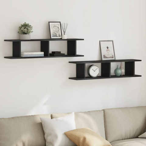 1 kép 2 db fekete tölgy szerelt fa fali polcok 90x18x20 cm