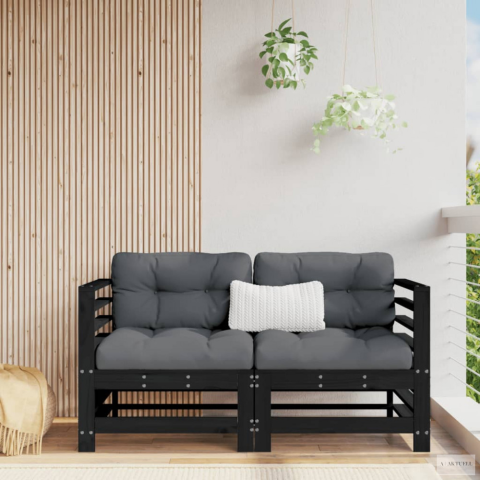 1 kép 2 db fekete tömör fenyőfa kerti sarokkanapé