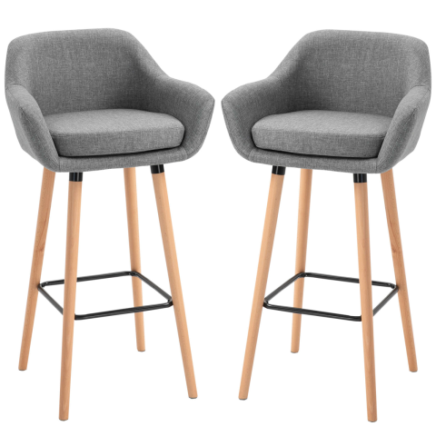 2 db kárpitozott bárszék, párna, lábtartó, 55x48x100cm, szürke bútor termékleírás