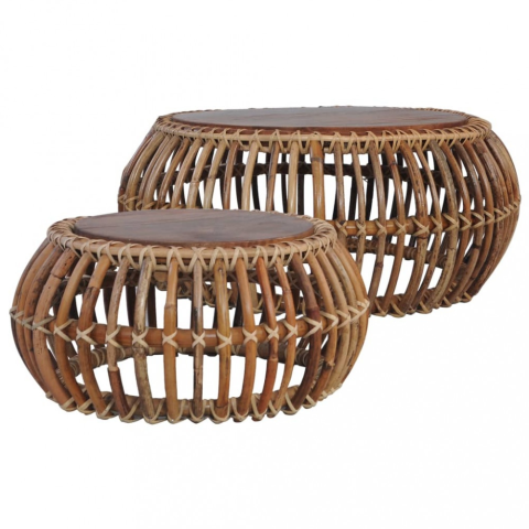 2 db természetes rattan dohányzóasztal bútor termékleírás