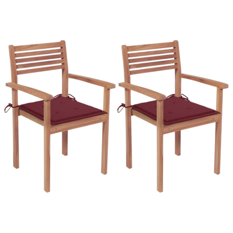 1 kép 2 db tömör tíkfa kerti szék bordó párnával kerti bútor termékleírás