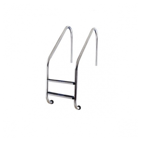 A kép csak illusztráció. Medence peremre rögzíthető, rozsdamentes acél létra, 2 műanyag betétes lépcsőfokkal. A létraszár rögzítéshez a tartozék hüvelyt be kell betonozni. A rögzítőtalp távolsága a medence belső síkjától: 500mm. 0,8-1,0m mély medencékhe
