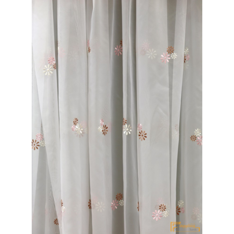 ◤Kategória: Voile ◤Minta: Apró/elszórt mintás. Virág mintás. Bordűrös. Hímzett ◤Szín: Rózsaszín, fehér ◤Magassága: 290 cm ◤Anyagösszetétel: 100% Poliészter ◤Raport függöleges: 65 cm ; vízszintes 72 cm. Súly: 56 g/m² A megjelölt ár 1 folyóméterre vonatkozi